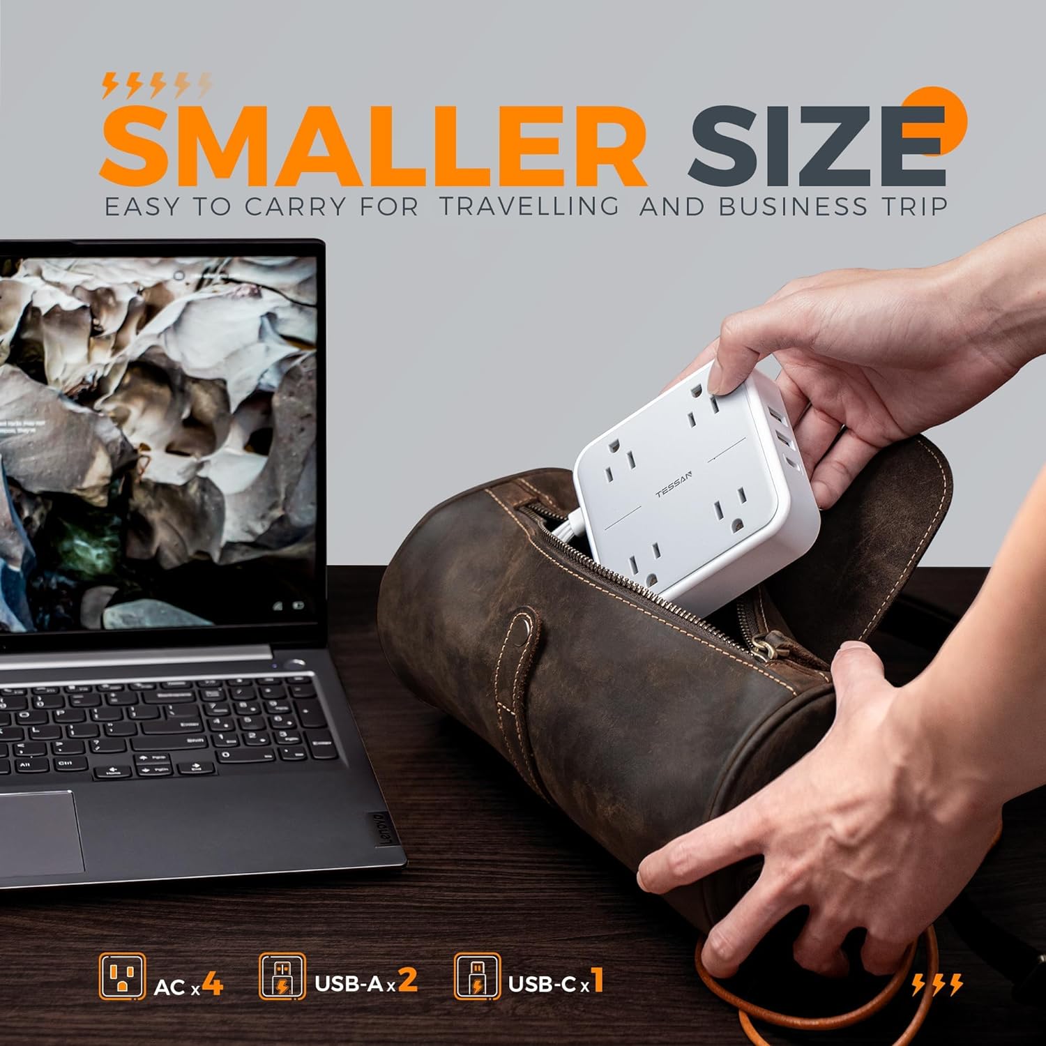 TESSAN Flat Plug Surge Protector Power Strip - 4 Outlets & 3 USB Ports (1 USB-C), 5ft Dorm/Home Office Charging Station, Gray